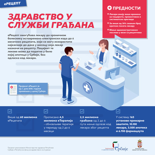 Услуга еРецепт је одличан пример како је здравство стављено у службу грађана и представља једну од услуга која је најзаступљенија у оквиру нових електронских услуга Владе Републике Србије јер је користи преко 2,5 милиона грађана.
