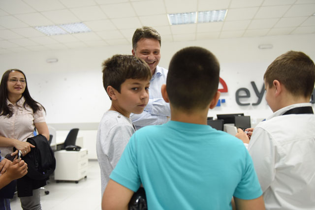 „Сведоци смо четврте индустријске револуције и свесни смо шансе да са њом можемо да надокнадимо заостало и ухватимо корак са развијеним земљама. Ова технолошка револуција фундаментално мења наше животе, наш начин размишљања, она је неминовна и незаустављива. Као друштво, али и као одговорна јавна управа која је у служби својих грађана ову прилику не можемо да пропустимо. Драго ми је што сам данас на кратко постао професор информатике и покушао да им на занимљив начин приближим све оно чиме се Канцеларија за ИТ и еУправу бави од свог оснивања. Колико су они данас научили од нас, могу са сигурношћу да кажем да смо и ми подједнако научили. Важно је да свет гледамо њиховим очима, да се развијамо у правцу који ће они наставити да прате и даље граде“, изјавио је Јовановић.