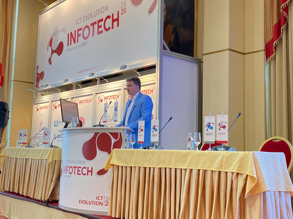 Доц др. Михаило Јовановић, директор Канцеларије за ИТ и еУправу отворио је данас 35. конференцију Инфотех 2020 која је одржана у Аранђеловцу. Он је овом приликом представио резултате Канцеларије у протеклом периоду, нарочито функционалности новог Портала еУправа, система за електронску идентификацију корисника и Јединственог електронског сандучића грађана тј. система еДоставе.