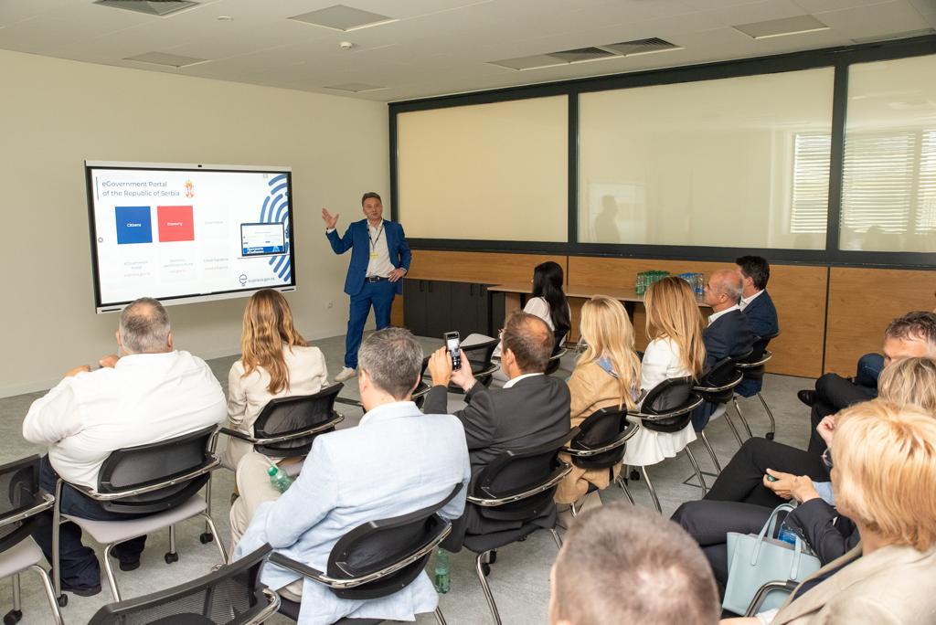 Домаћин посете, директор Канцеларије за информационе технологије и електронску управу Владе РС Михаило Јовановић, подсетио је све присутне да је једна од важнијих ставки да Дата центар ставља Крагујевац на мапу овог дела Европе, јер слична институција не постоји, не само у региону, већ и у ширем делу централне и југоисточне Европе. “Захваљујући Српској асоцијацији менаџера више од 20 компанија, претежно оних које нису из ИТ сектора, је данас обишло Државни дата центар у Крагујевцу и добило основне информације везано за ову државну инфраструктуру од посебног значаја, као и могућност њеног комерцијалног коришћења. Дигитална трансформација, као насушна потреба компанија у ери 4. индустријске револуције, са собом доноси и ризике који се тичу безбедности и поузданости чувања података. Државни дата центар је пројектован и изграђен по највишим техничким и безбедносним стандардима, испуњава стандарде квалитета ИСО 9001 и 27001, а у току је сертификација за ЕН 50600 и ИСО 27701. Више десетина компанија из ИКТ сектора, банкарског и многих других сектора је сместило своје податке у Крагујевцу, а то је учинио и светски ИТ гигант – Oracle корпорација. Очекујем повећано интересовање српских компанија за услуге дата центра, како због интезивне дигитализације пословања, тако и због актуелних геополитичких дешавања.“, изјавио је др Михаило Јовановић, директор Канцеларијe за ИТ и еУправу.