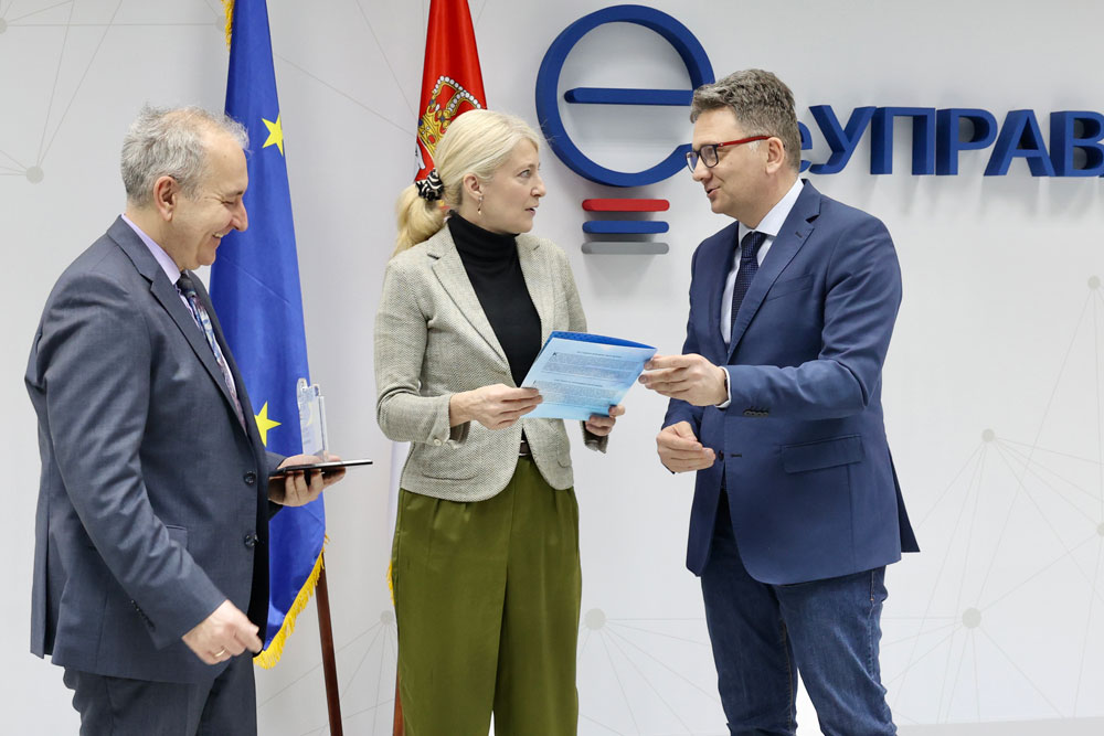 „Данас имамо готово 1.8 милиона регистрованих еГрађана, што најбоље говори колико грађани имају поверења у електронску управу и услуге. Само електронском разменом података по службеној дужности уштедели смо грађанима близу 150 милиона одлазака на шалтере. Колико смо, као земља напредовали у области еУправе говори и извештај Светске банке, који прати напредак у области дигиталне трансформације, у којем се Србија налази на 11. месту у свету, односно 4. месту у Европи. Практично смо за само пола деценије, када смо кренули озбиљно да се бавимо електронском управом успели да дигитализујемо јавну управу и учинимо је транспарентнијом, ефикаснијом, економичнијом и у служби свих наших грађана“, истакао је министар Јовановић.