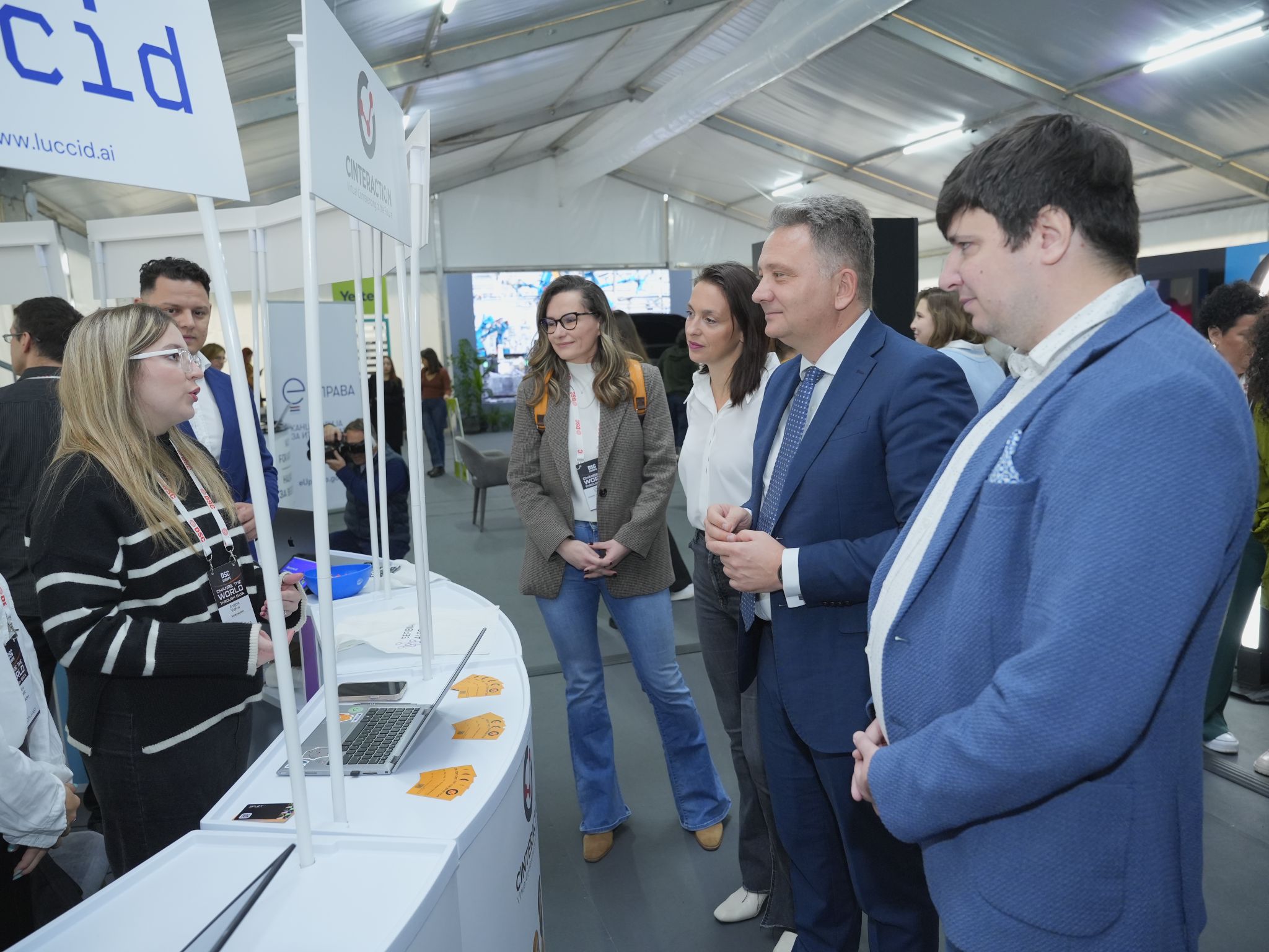 Посетиоци „DSC Europe 24“, имају прилику да се упознају са бројним пројектима из области вештачке интелигенције и обраде података који стварају позитиван друштвени и еколошки утицај и подстичу иновације, као и да виде стартап село, у којем су, поред осталих, и стартапи корисници Националне платформе за вештачку интелигенцију која се налази у Државном дата центру у Крагујевцу.